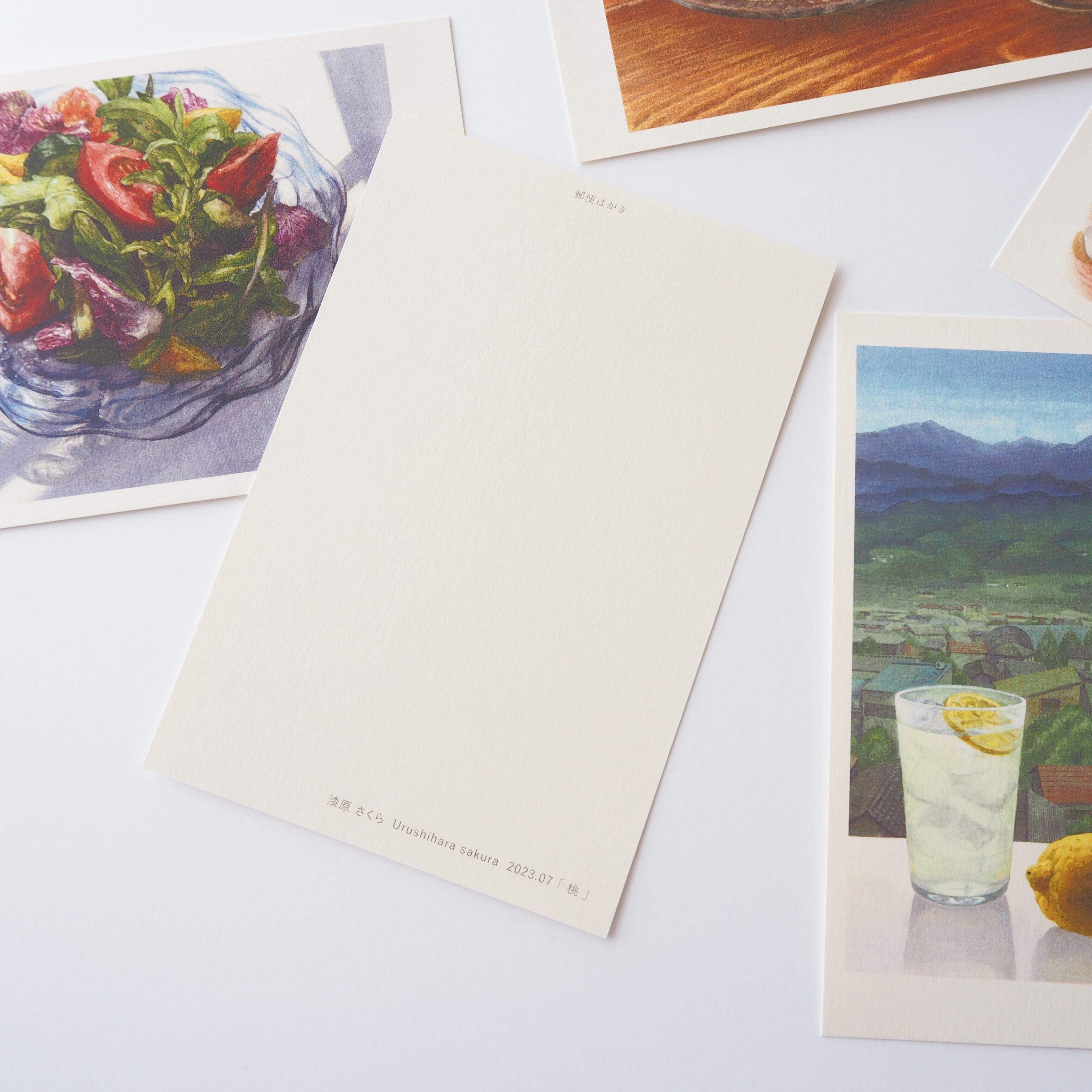 味や香り、遠い夏の想い出までがふと心に蘇るような漆原さくらの食べ物の絵は、受け取った瞬間に笑顔が生まれ、相手とのコミュニケーションや心の繋がりを豊かにします。